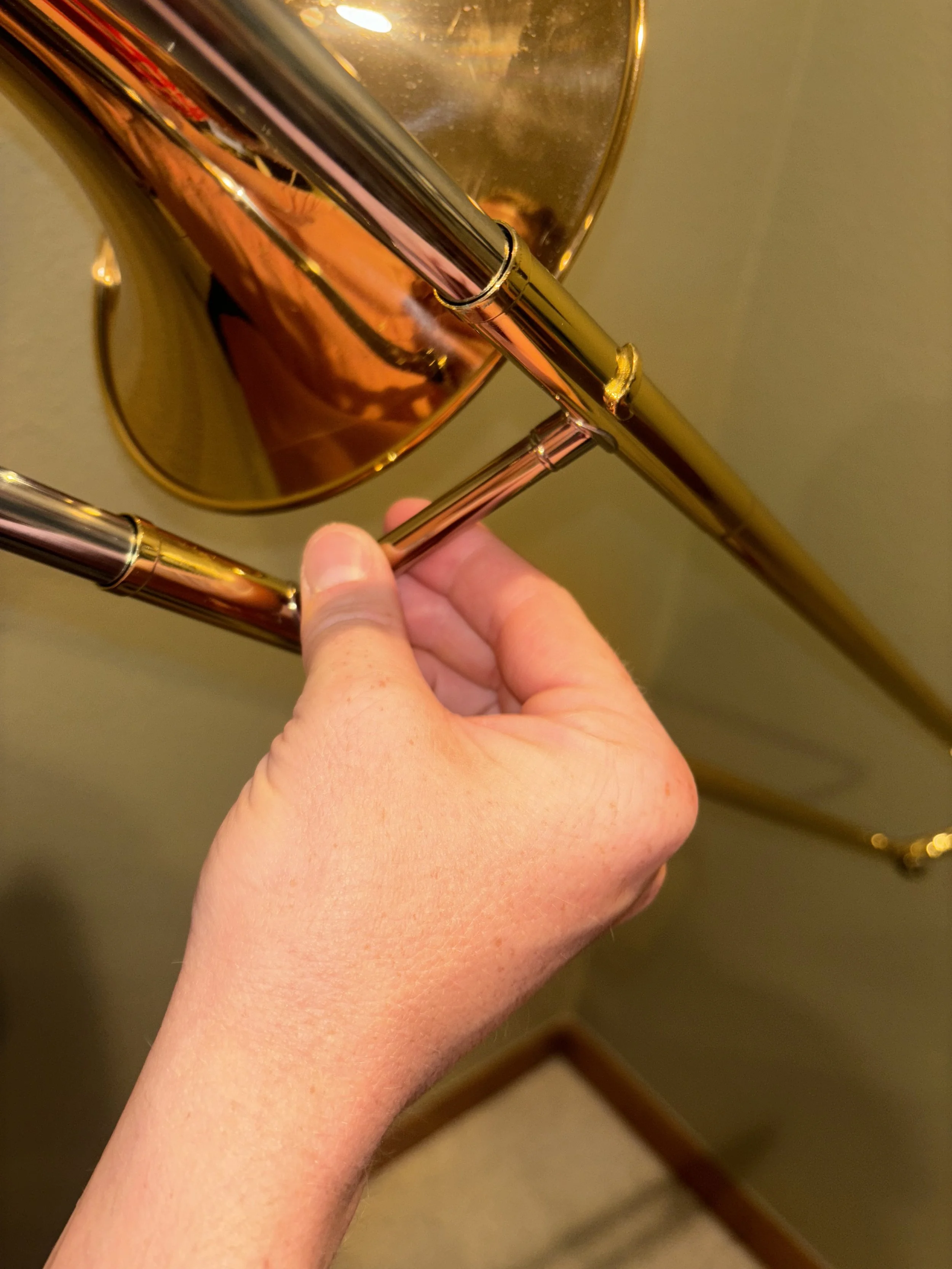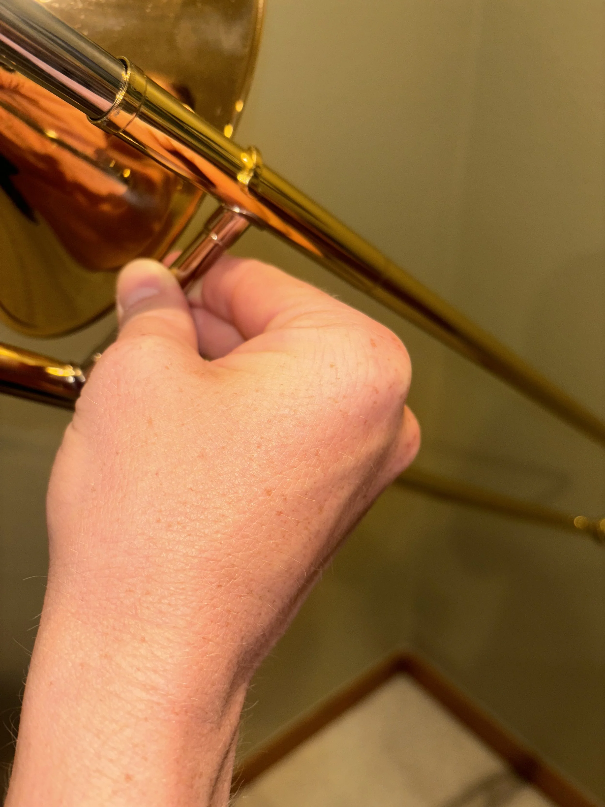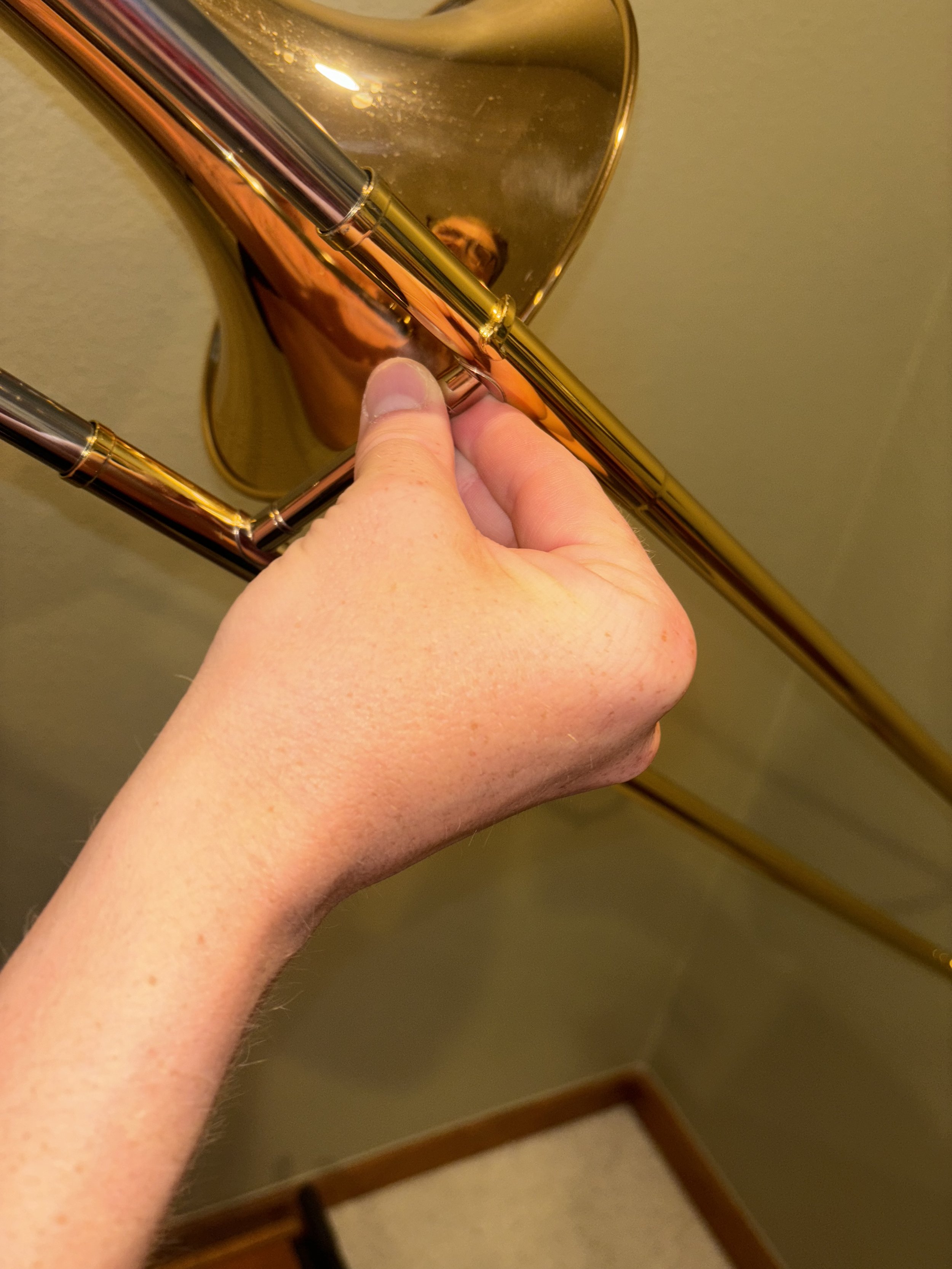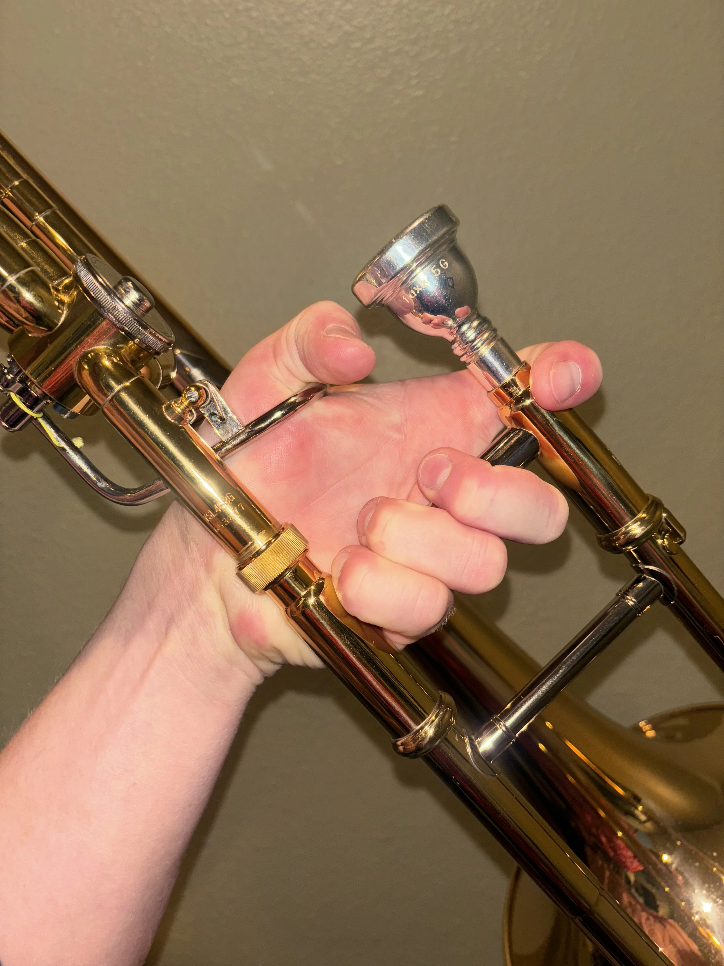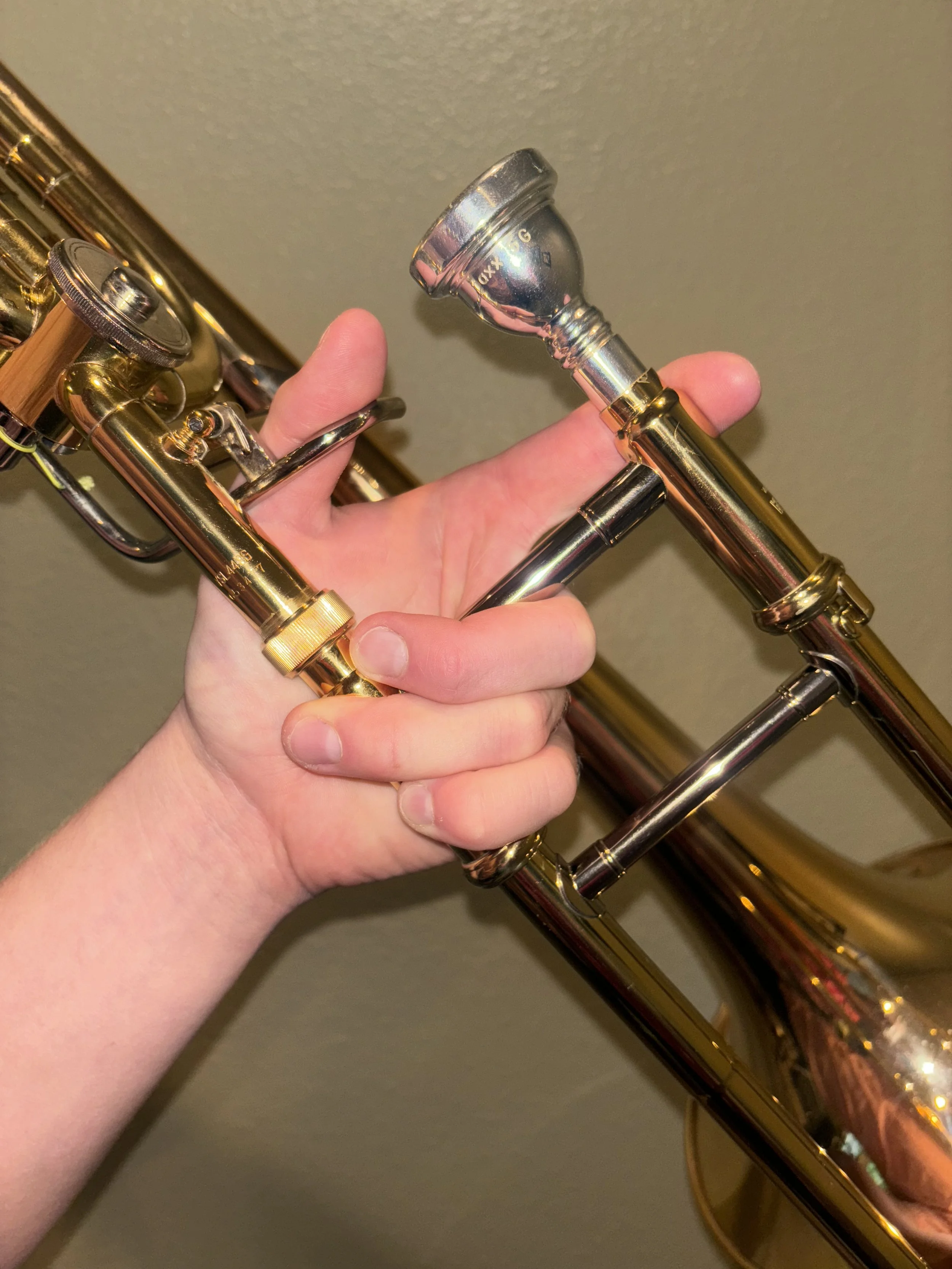 Holding the Trombone properly is something ALL players need to focus on. Ensuring that the grip on the slide brace is relaxed will provide students with the foundation for all trombone playing. Utilize the photos to check and compare your trombone hold.